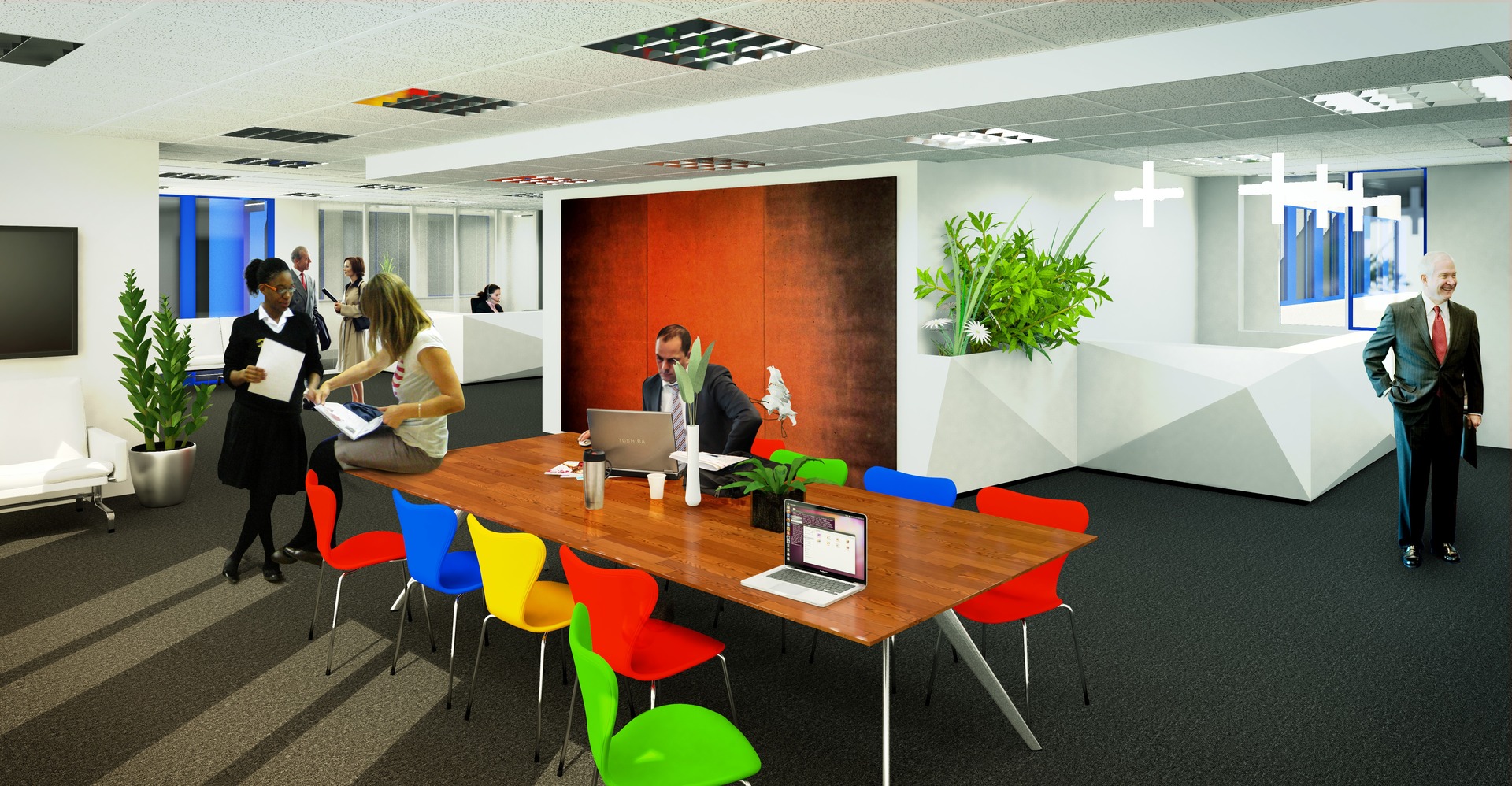 De kantorenmarkt in Nederland staat enorm onder druk door verschillende factoren. Er is een enorm overschot van vierkante meters, veel organisaties maken een krimp door en het kantoorleven wordt flexibeler georganiseerd. Desondanks is de markt voor flexibele werkplekken in opkomst. Voor facilitypoint hebben wij een transformatieplan voorgesteld dat met minimale middelen de verdiepingen herindeelt met kantoorunits, vergaderruimtes, pantry's en boardrooms. Op de begane grond is een grote centrale ruimte ingericht voor mobiel flexwerken.